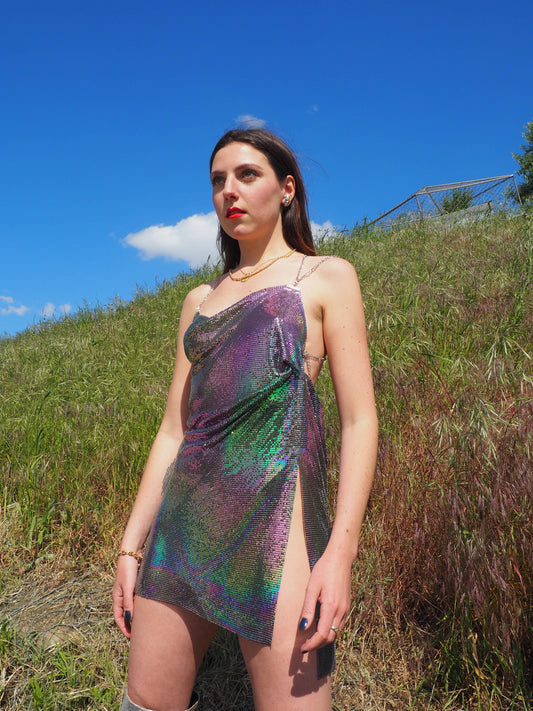 00's holographic chainmail dress (M)